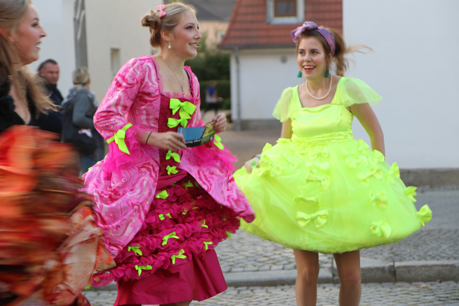 Die lautesten Töne und die wildesten Tänzer findet ihr von 18 bis ca 0 Uhr auf der großen Bühne in der Mitte der für die Durchfahrt gesperrten Schloßstraße.