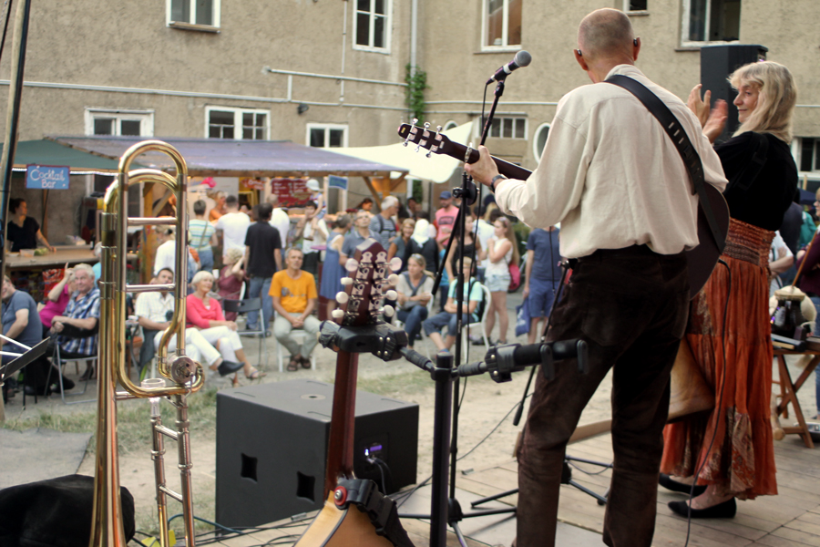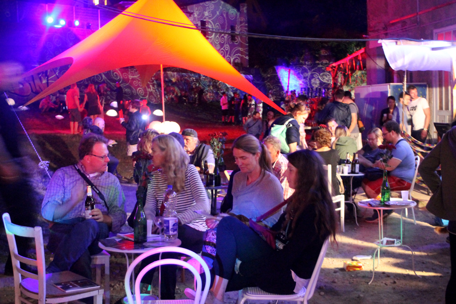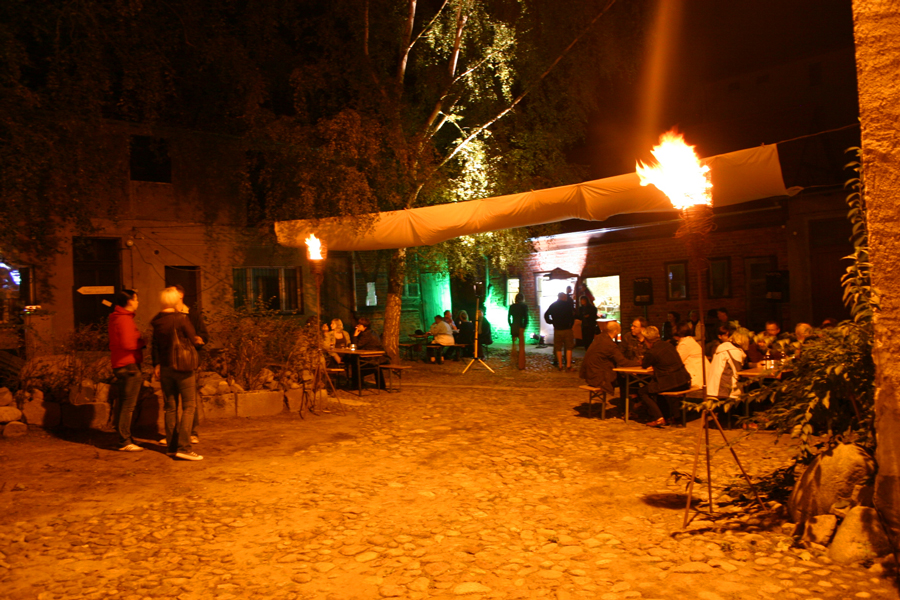 Von 18 Uhr bis 2 Uhr begleitet uns auf der Hofbühne im Kunsthaus eine Mischung aus virtuoser Rockmusik und Elektronischen Glanzpunkten: